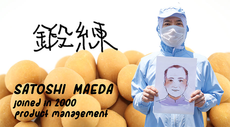 粉巻きとは回転釜の中に原料の豆を入れ、糖蜜などの液体と粉をかけて豆の表面をコーティングする仕事です。バラつきがある原料を使いながら様々な条件の下、最終的には均一な製品に仕上げていかなくてはならないので大変ですが、美味しくできた時はやはり嬉しいです。